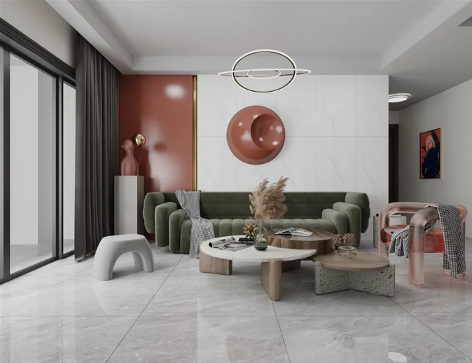 以玻璃、金屬、鏡面等頗有通透感的元素作裝飾,增強大理石瓷磚的肌理質感,呈現出純粹干凈的感官效果,優雅舒適的格調油然而生。