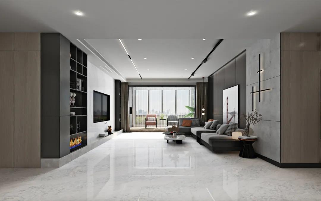 嵌入墻體的裝飾架搭配線條延伸感十足的惠特灰,讓空間場景更為闊落大氣,讓你結束一天行程后可以得到更舒展的放松。