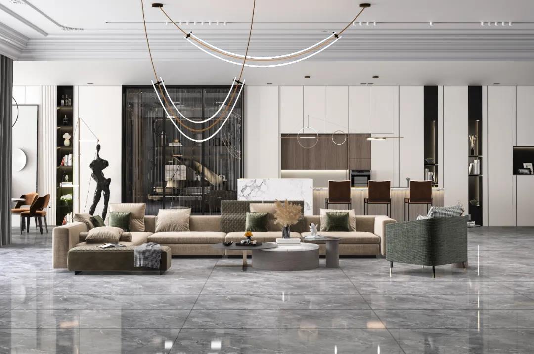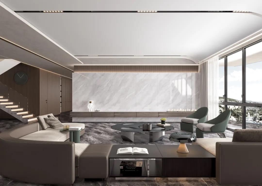 紋理細膩的流沙彩虹與森林色系的軟裝進行碰撞,營造靜謐悠然的自然氣息,叢林的純粹之感呼之欲出。