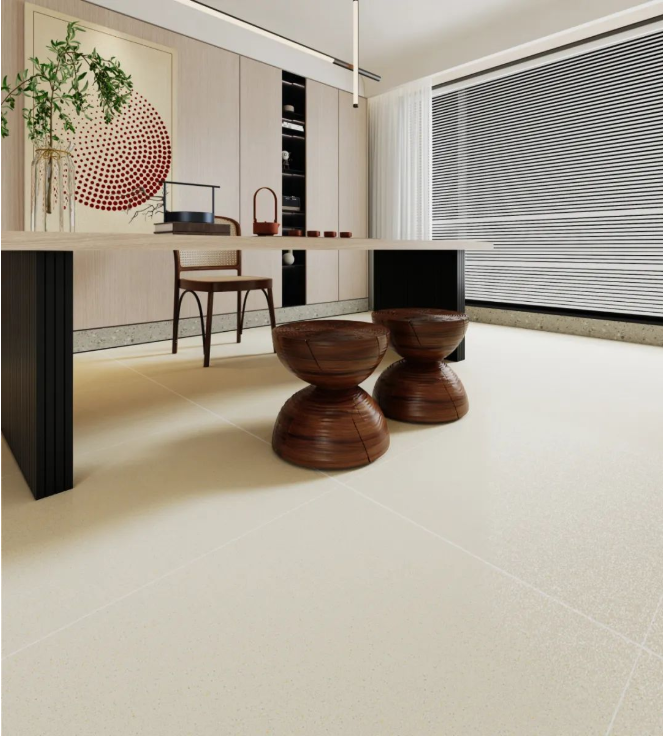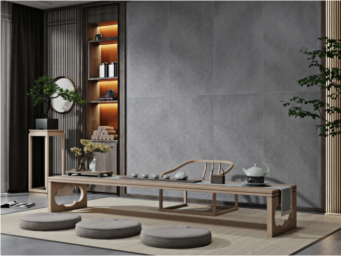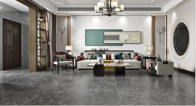 以【DCSS715RP05A秋夜雨】作為地面裝飾,深灰與細絲白紋的搭配,宛如水墨畫般韻味十足,流露出儒雅而寧靜的空間氛圍感。