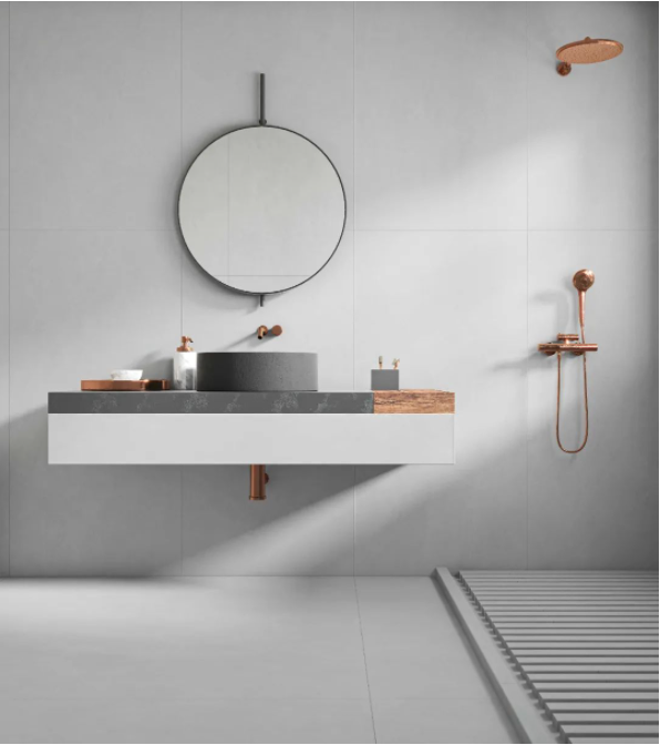 以經典的灰白色作為空間主色調,沒有任何多余的裝飾,僅聚焦于浴室功能本身,打造具有極簡氣息的空間。