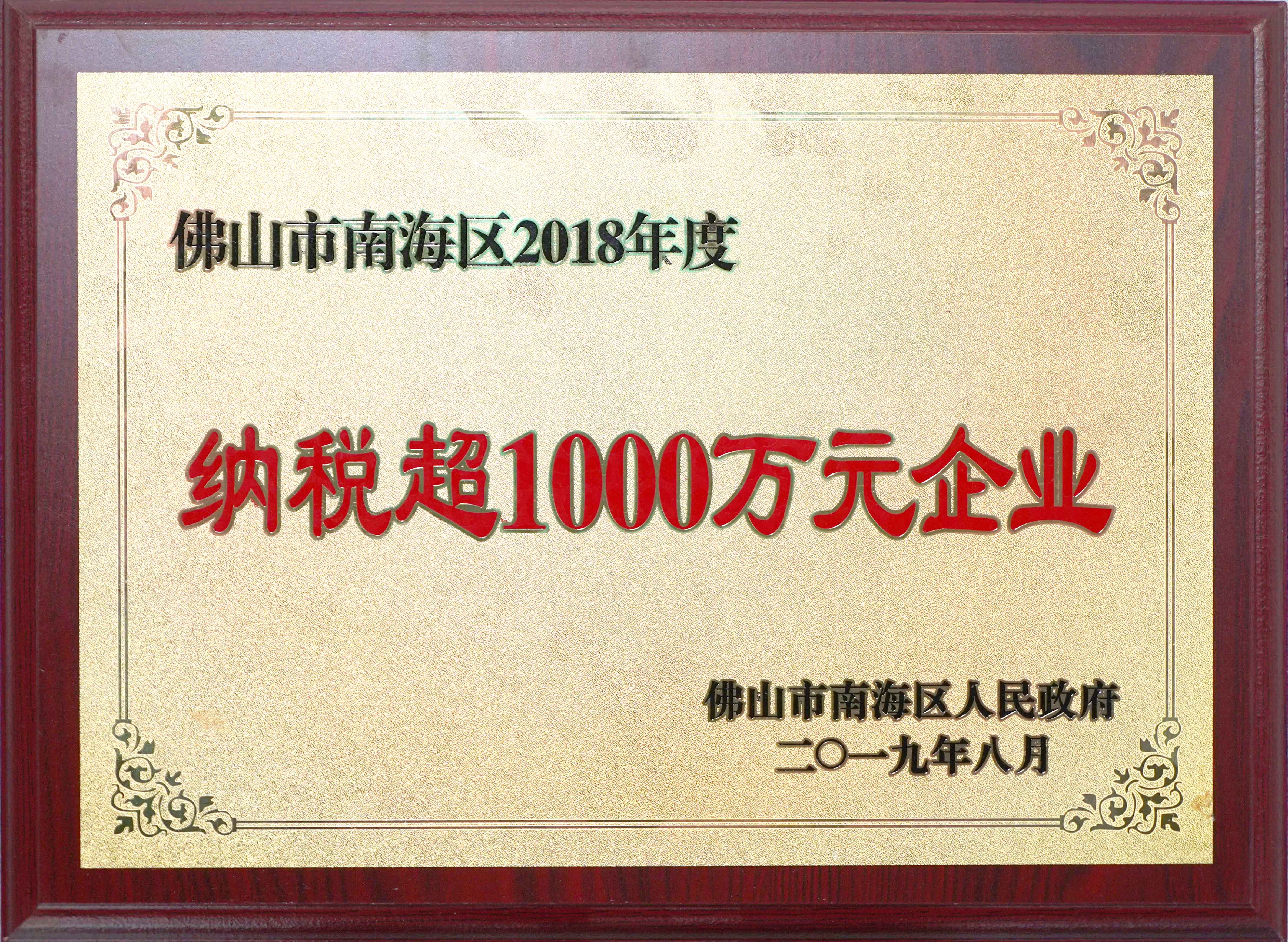 2018年納稅超1000萬元企業
